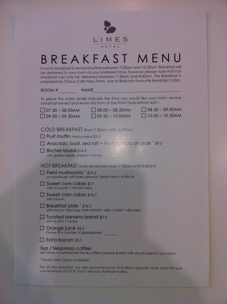 I usually stay in the Brisbane CBD when in the area, however as the purpose of my visit this time was personal and my first night had me in Fortitude Valley for dinner and drinks I decided to try something different and after some research I settled on the Limes.