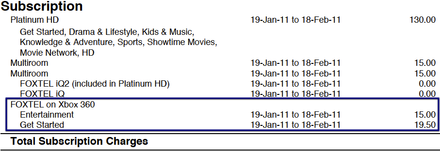 However, upon receiving my first Foxtel bill since subscribing to the service I am definitely charged for it: