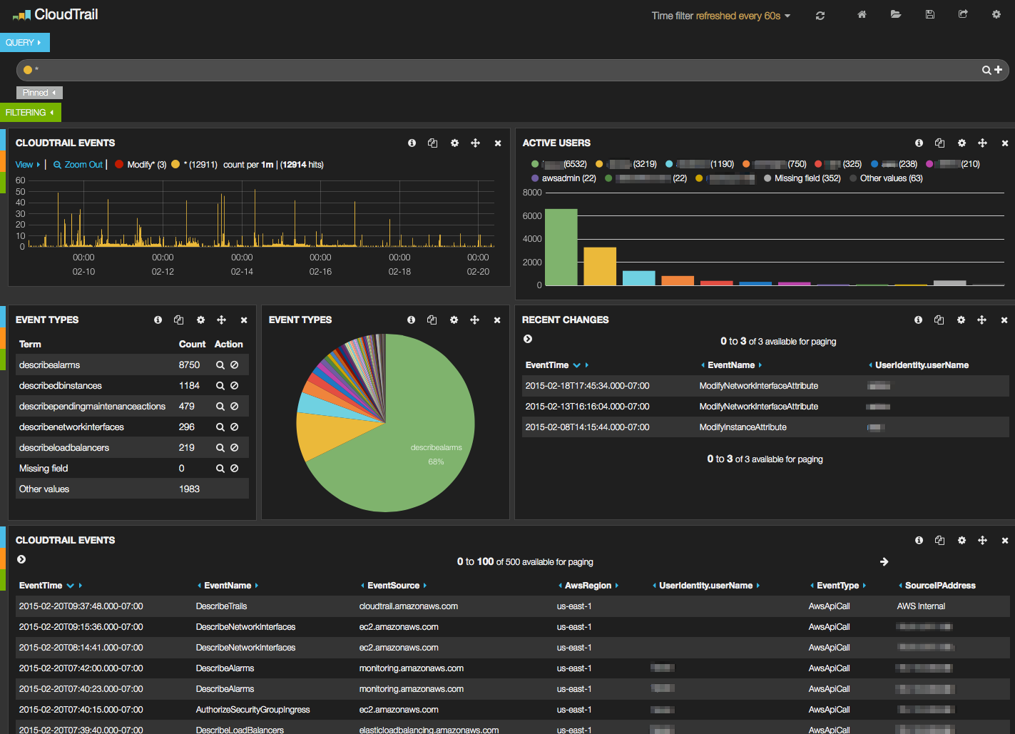 I’ve recently discovered Traildash, a powerful dashboard to import and analyse CloudTrail events with ElasticSearch and Kibana.