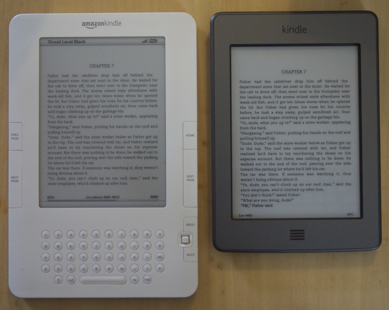 The E-Ink display on the Kindle Touch is also noticeably clearer than the Kindle 2.